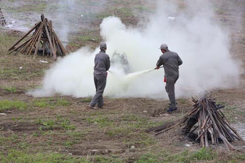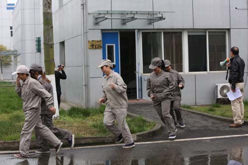 本次演練共演練了三個科目:1、連接室外消防給水滅火;2、提取車間遇到火災(zāi)事故的疏散演練;3、滅火器撲滅初期火災(zāi)。