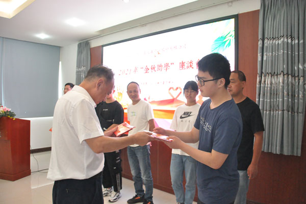 (公司領(lǐng)導(dǎo)為各位學(xué)子發(fā)放助學(xué)金)