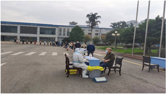 11月21日正式閉環(huán)生產(chǎn),早上7:10食堂準(zhǔn)時供應(yīng)早餐,提供稀飯、雞蛋、饅頭、牛奶、蔬菜等,員工隔區(qū)、順向、分時就餐。8點準(zhǔn)時到崗開始閉環(huán)生產(chǎn)第一天工作,制劑車間、提取車間均按照閉環(huán)生產(chǎn)安排開足馬力生產(chǎn)。資財部、行政部、質(zhì)量控制部、質(zhì)量保證部、工程設(shè)備部、儲運(yùn)部、客戶部、安辦各司其職保障生產(chǎn)和員工生活。該天10點什邡市經(jīng)信局領(lǐng)導(dǎo)到公司檢查閉環(huán)生產(chǎn)工作充分肯定我們閉環(huán)管理工作,同時要求公司一定要嚴(yán)格做好疫情防控工作,保證安全生產(chǎn)。11點過政府疫情防控部門組織醫(yī)務(wù)人員到公司進(jìn)行核酸檢測服務(wù),認(rèn)真服務(wù)企業(yè),充分體現(xiàn)了政府的責(zé)任和關(guān)懷。