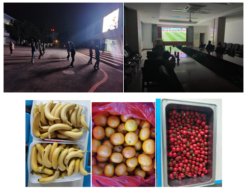 集團(tuán)公司董事長、公司董事長、總經(jīng)理多次強(qiáng)調(diào)要保證閉環(huán)生產(chǎn)的員工的食、住,及時(shí)解決員工的生活問題;要保證安全,疫情防控安全、生產(chǎn)安全、質(zhì)量安全、人生安全。三天來公司提供豐富的早餐,不斷變換午餐、晚餐菜品、提供不同品類水果。及時(shí)聯(lián)系外部保供單位購進(jìn)滅蚊液、墊絮使員工睡得舒服;給員工提供免費(fèi)的洗發(fā)液、沐浴露、盆子、洗漱用品等生活物資。晚餐后公司大屏幕開始播放新聞聯(lián)播員工們紛紛駐足觀看了解國家時(shí)事,員工自發(fā)跳起了廣場舞,公司三樓會(huì)議室一群足球迷開始享受足球盛宴。